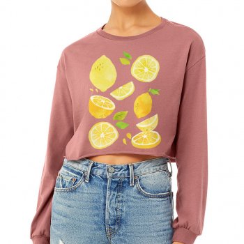Lemon Aesthetic Cropped Long Sleeve Sweatshirt – Vintage Print Women’s Crop Top – Cottagecore Citrus Long Sleeves Pullover