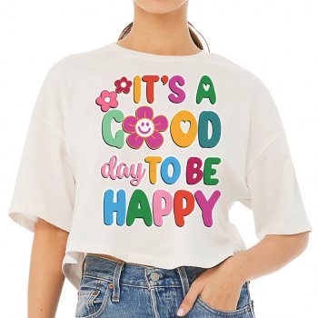 It’s a Good Day to Be Happy Cropped T-Shirt – Boho Hippie Trendy Tee – Inspirational Women’s Basic T-Shirt