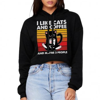 I Like Cats And Coffee Women’s Cropped Hoodie – Coffee Lover Hooded Sweatshirt – Vintage Cat Super Crop Top Hoodies