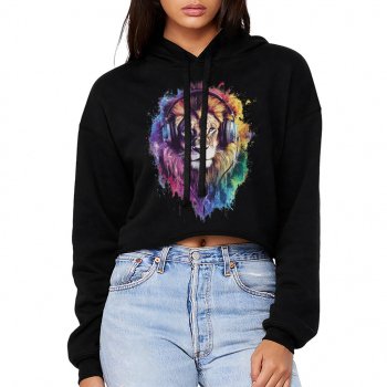 Cool Lion Women’s Cropped Hoodie – Animal Print Hooded Sweatshirt – Lion Face Design Super Crop Top Hoodies