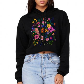 Wildflower Women’s Cropped Hoodie – Botanical Design Hooded Sweatshirt – Nature Lover Super Crop Top Hoodies
