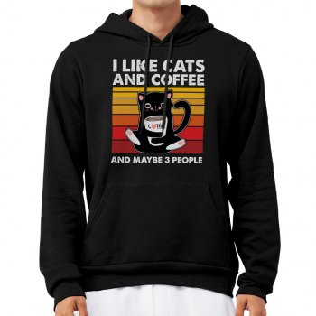 I Like Cats And Coffee Hoodie – Vintage Cat Hooded Sweatshirt – Coffee Lover Unisex Hoodie